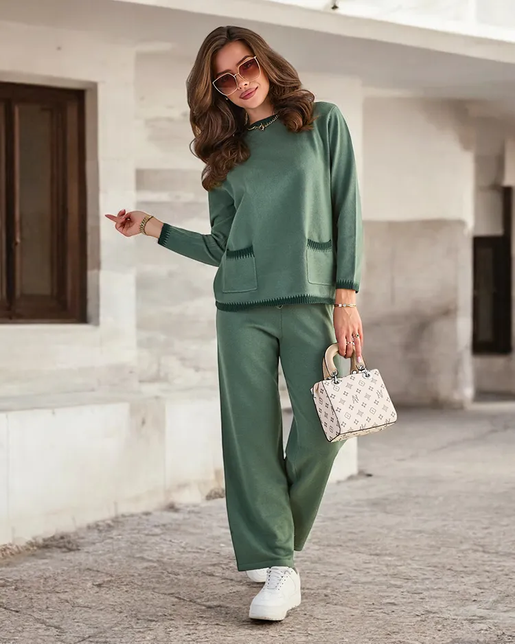 - Damen Pullover Set aus angenehmem Stoff. Der Pullover mit Rundhalsausschnitt, hat lange Ärmel. Die weite Hose ist mit Gummizug und wird in der Taille gebunden. Ein Muss in dieser Saison! HINWEIS: Messgenauigkeit (+/-) 1 cm.