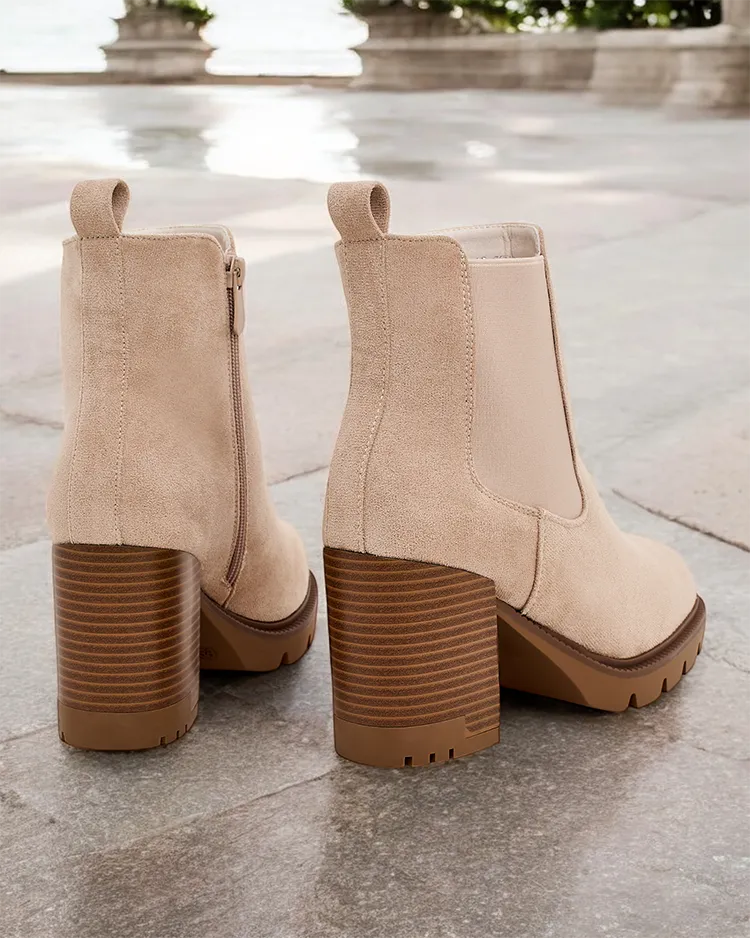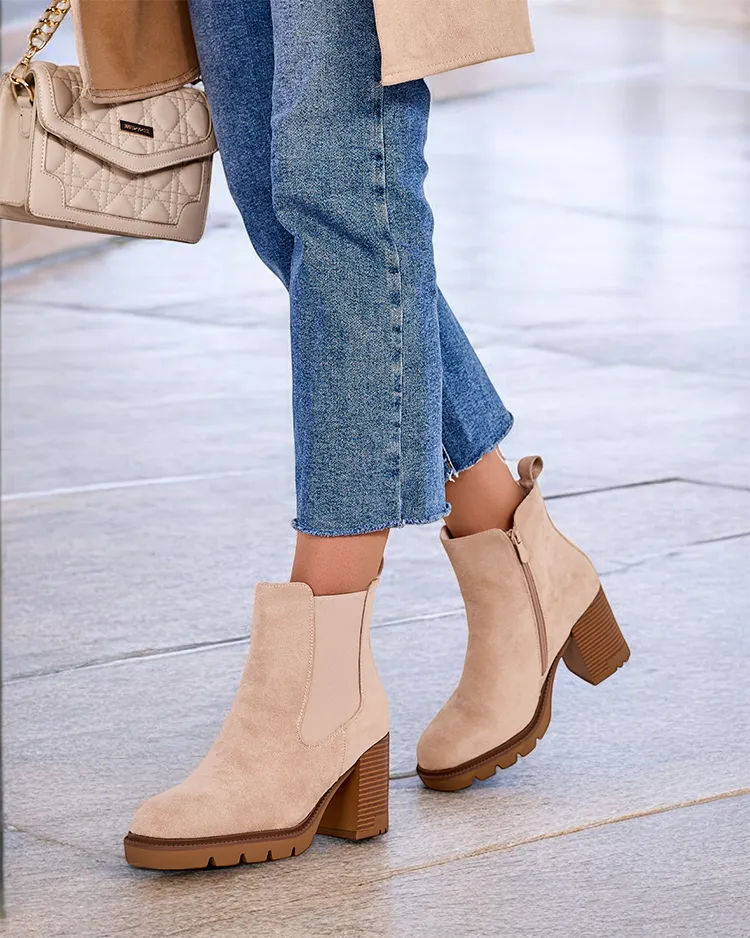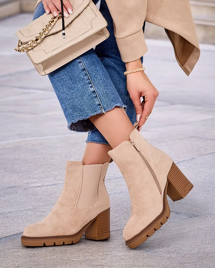 - Stiletto-Stiefel - Stil und Komfort in einem. Schlupfmodell mit runder Schuhspitze. Schuhwerk aus ökologischem Wildleder. Die Innensohle hat ein zartes Fell. Perfekt für herbstliche Outfits!