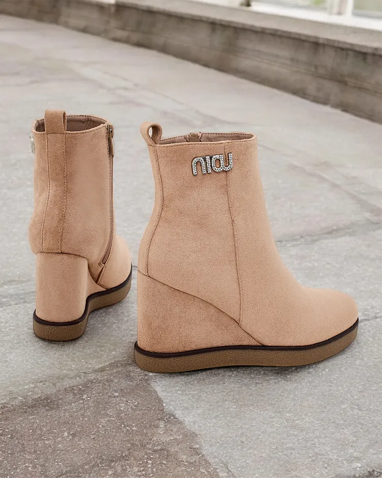 - Elegante Damenstiefel auf Ankern, hergestellt aus Öko-Wildleder. Die Schuhe sind innen mit Fell gefüllt. Eine perfekte Wahl für den Herbst!