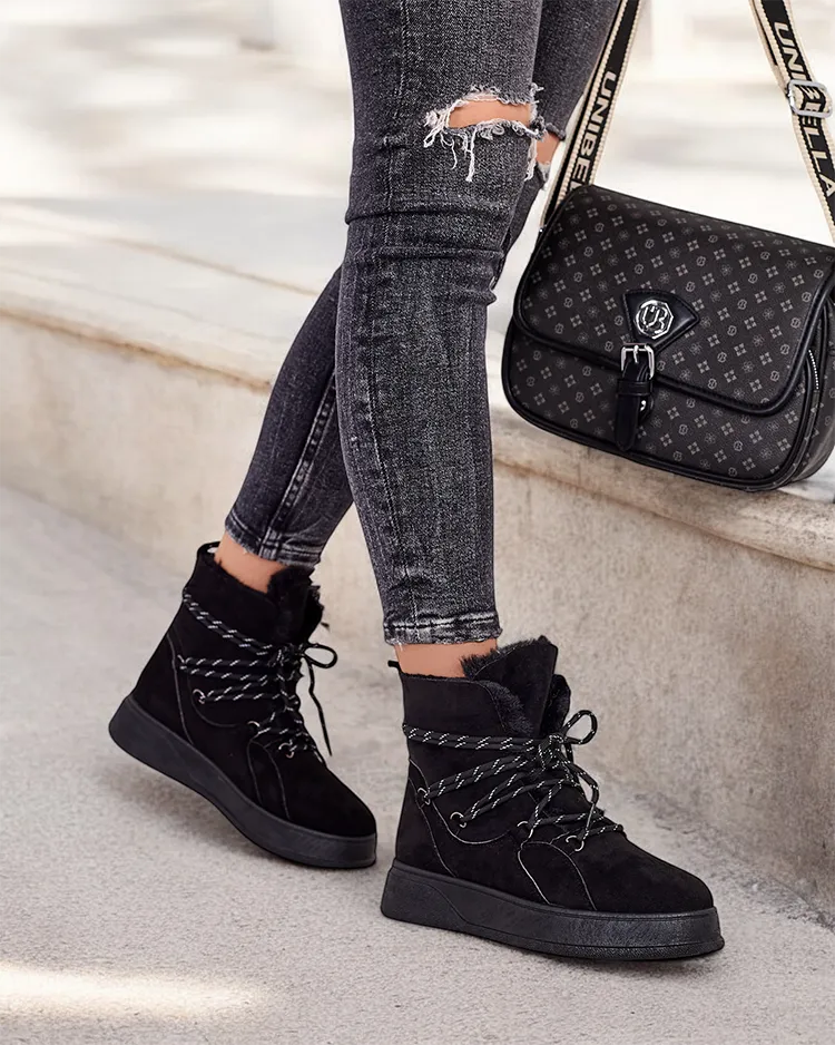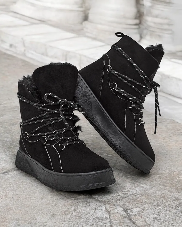 - Damen Schnee Stiefel mit einem Obermaterial aus Wildleder-Ökoleder. Innen angenehmes Fell, Schlupf- und Schnürschuhe. Perfekt für den Winter!