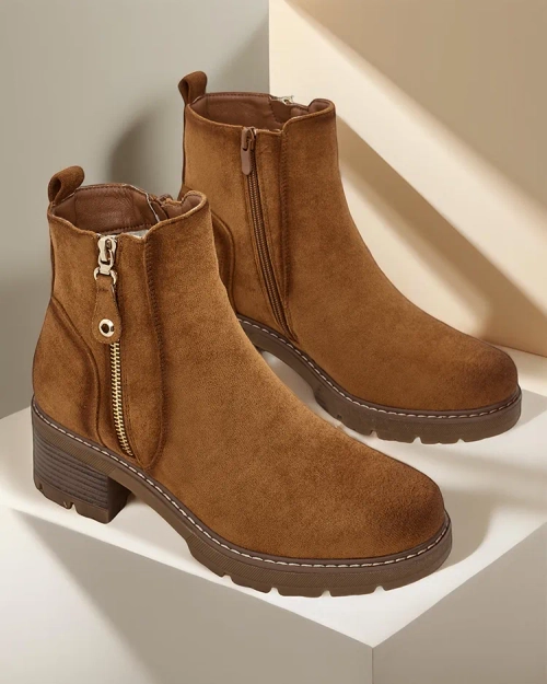 - Fabelhafte flache Damenstiefel, mit einem Reißverschluss verschließbar, aus Veloursleder-Ökoleder gefertigt. Das Innere mit einem zarten Fellfutter garantiert Komfort und Wärme auch an kälteren Tagen. Das Modell hat dekorative Reißverschlüsse!