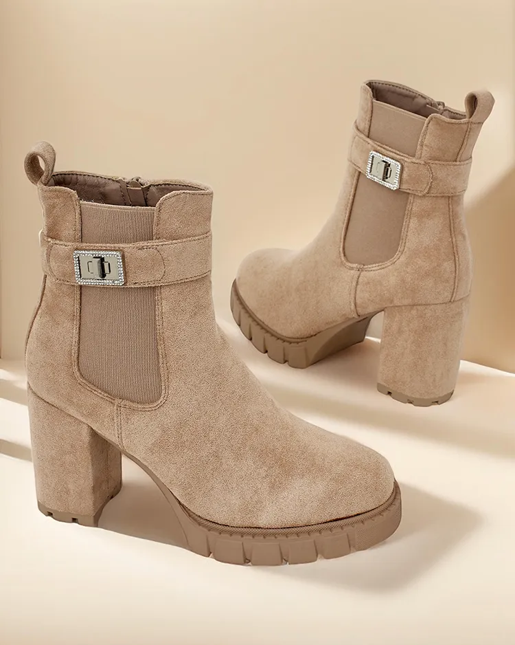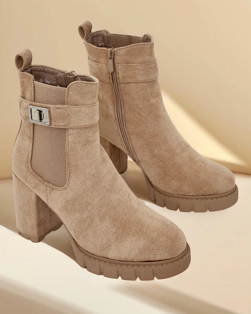 - Ankle Boots am Pfosten - Stil und Komfort in einem. Ein Modell mit Reißverschluss und einer runden Zehenkappe. Schuhe aus ökologischem Wildleder. Das Innere ist mit Pelz gefüllt. Perfekt für Herbstoutfits!