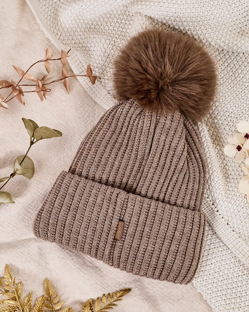 - Schöne isolierte Wintermütze für Damen aus Strickstoff. Modell mit weichem Futter aus Fleece, verziert mit flauschigem Bommel. Perfekt für kalte und verschneite Tage!