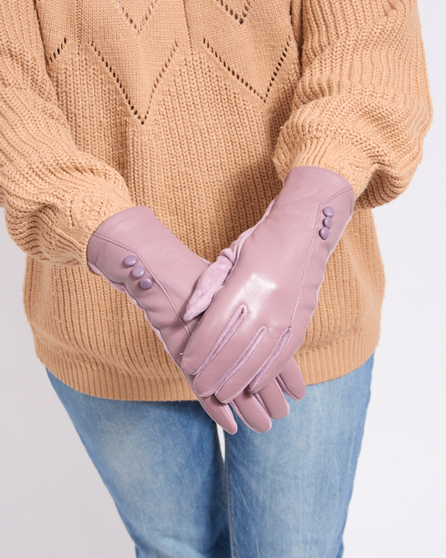 - Warme Damen Handschuhe aus einer Kombination von Eco-Leder und Stoff gefertigt. Innen befindet sich ein dünnes Fellfutter. Ein Satin-Patch am Zeigefinger ermöglicht die Bedienung von Touchscreens.