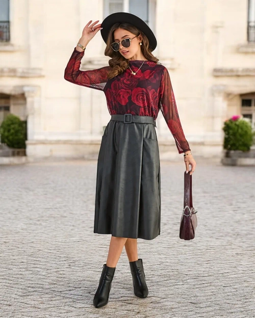- Damen Midirock aus lederähnlichem Material. Das Modell hat einen elastischen Bund und 2 Taschen. Eine ideale Basis für viele einzigartige Outfits! Das Modell wird mit einem Gürtel geliefert. HINWEIS: Messgenauigkeit (+/-) 1 cm.