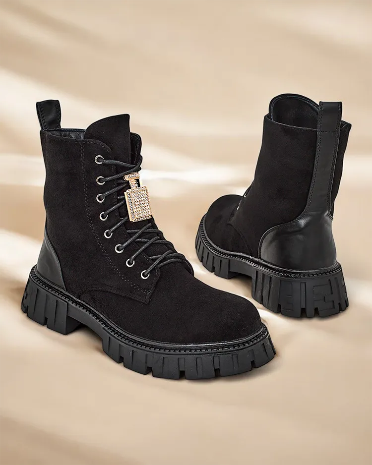 - Damen Stiefel Arbeiter Typ sind außergewöhnliche Schuhe, die Stil und Komfort vereinen. Hergestellt aus Wildleder und gefüllt mit weichem Fell. Schnürmodell und Reißverschluss. Die dickere Sohle sorgt für zusätzlichen Komfort.