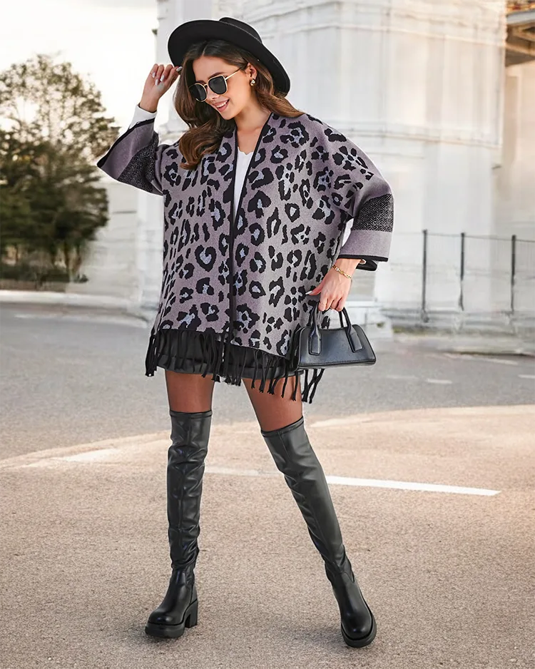 - Eleganter Damenponcho mit dekorativem Print und Fransen. Weiches Material, Wärme und Stil in einem. Perfekt für jedes Outfit. Erhältlich in verschiedenen Farben.