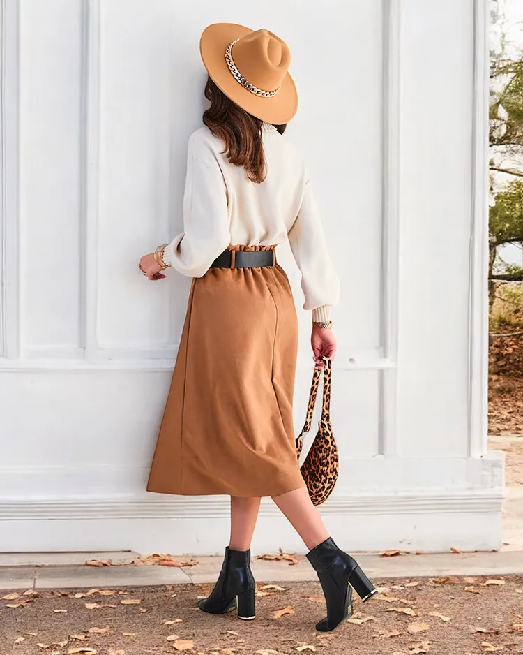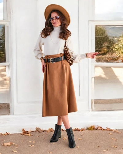 - Damen-Midi-Rock aus weichem Stoff a'la Wildleder. Das Modell wird mit einem Gürtel geliefert. Eine ideale Grundlage für viele besondere Outfits! ACHTUNG: Messgenauigkeit (+/-) 1 cm.