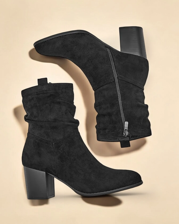 - Pfostenstiefel - Stil und Komfort in einem. Das Modell ist mit einem Reißverschluss mit runder Spitze befestigt. Das Schuhwerk ist aus wildlederähnlichem ökologischem Leder gefertigt. Die Innensohle besteht aus angenehmem Stoff. Perfekt für Herbstoutfits!