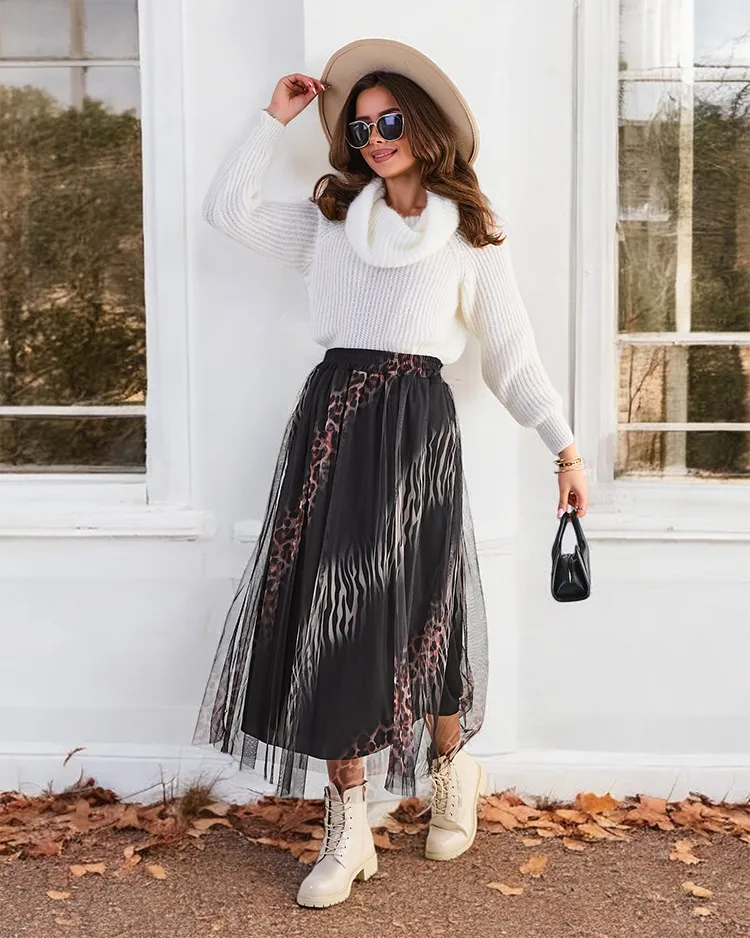 Royalfashion Gemusterter Midi-Rock für Damen mit Tüll