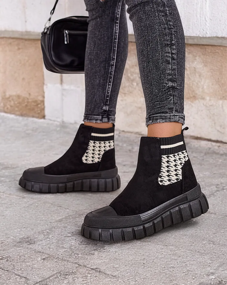 - Damen-Plateau-Ankle-Boots aus Wildleder-ähnlichem Eco-Leder. Schlupfstiefel, innen aus bequemem Stoff. Perfekt für den Herbst!