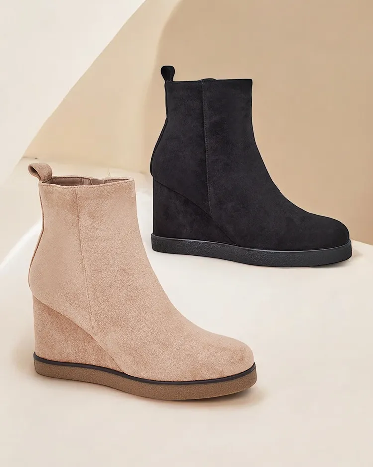 - Elegante Damen Keilstiefel aus Eco-Wildleder. Schuhe innen mit Pelz gefüttert. Perfekte Wahl für den Herbst!