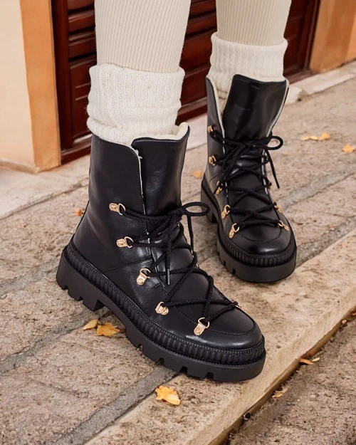 - Damen Schneestiefel mit Schaft aus Kunstleder. Gefüttert mit Pelz, Schnürschuhe. Perfekt für den Winter!