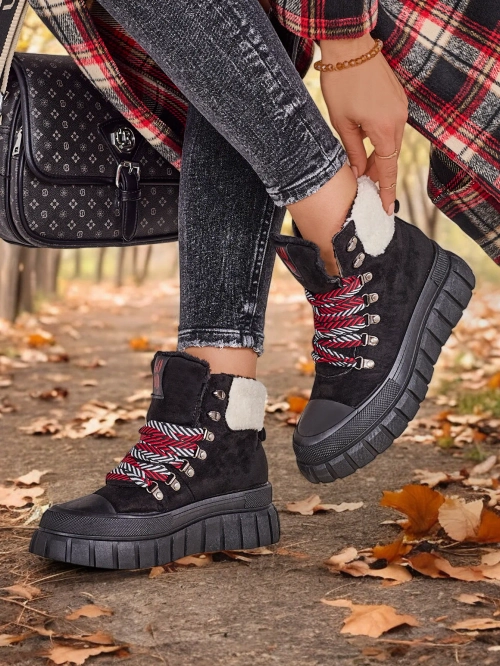 - Damen Trekking Trapery mit geschnürtem Obermaterial. Das Material besteht aus Wildleder-Ökoleder. Das Innere der Schuhe ist mit Pelz isoliert. Perfekt für die Winterzeit!