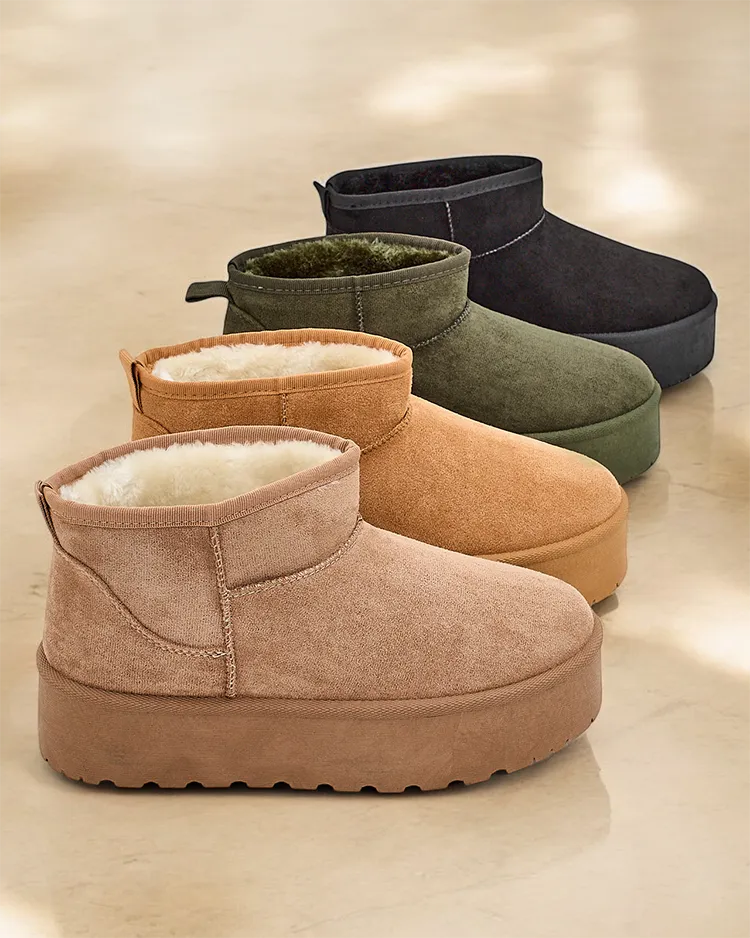 - Tolle Damen-Winter-Plateauschneestiefel. Das Obermaterial besteht aus ökologischem Wildleder und ist mit Pelz gefüttert. Perfekte Basis für den Winter!