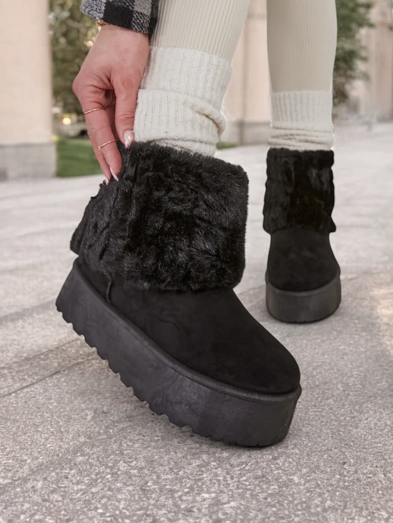 - Damen-Schneestiefel mit einem Schaft aus einer Kombination aus Eco-Leder und angenehmem Fell. Im Inneren befindet sich ein Fellfutter, die Schuhe haben einen Slip-On Schaft. Perfekt für den Winter!