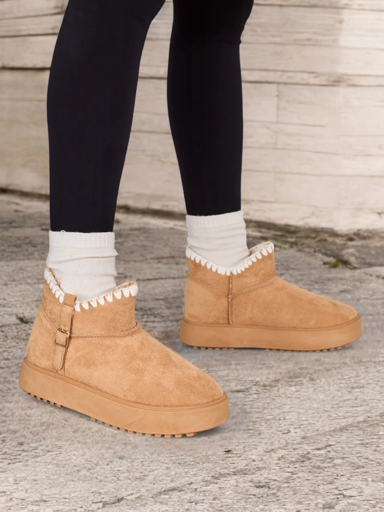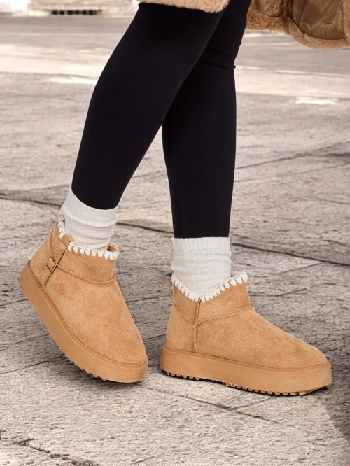 - Tolle Damen Winterplateau-Schneestiefel. Das Obermaterial besteht aus wildlederähnlichem ökologischem Leder, gefüttert mit Pelz. Perfekt für den Winter!