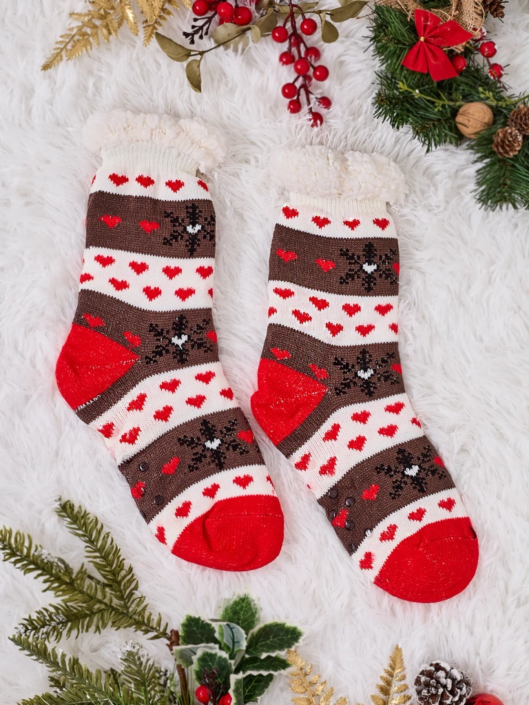 - Schöne dicke Damensocken mit einem festlichen Druck. Innenseite mit weißem, warmem Fell gefüttert. Perfekt für kältere Winterabende!