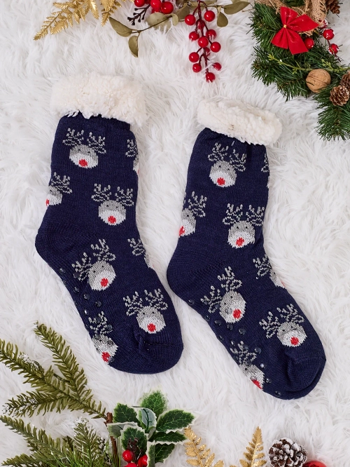 - Schöne dicke Damensocken mit einem festlichen Druck. Innenseite mit weißem, warmem Fell gefüttert. Perfekt für kältere Winterabende!