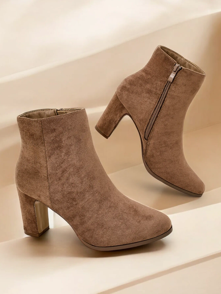 - Damen-Stiefeletten sind die perfekte Lösung für kühlere Tage. Das Obermaterial aus Eco-Wildleder ist mit einem Reißverschluss verschlossen, und im Inneren befindet sich eine Eco-Leder-Innensohle. Ein Modell auf dem Pfahl, mit runder Spitze. Eine tolle Erg