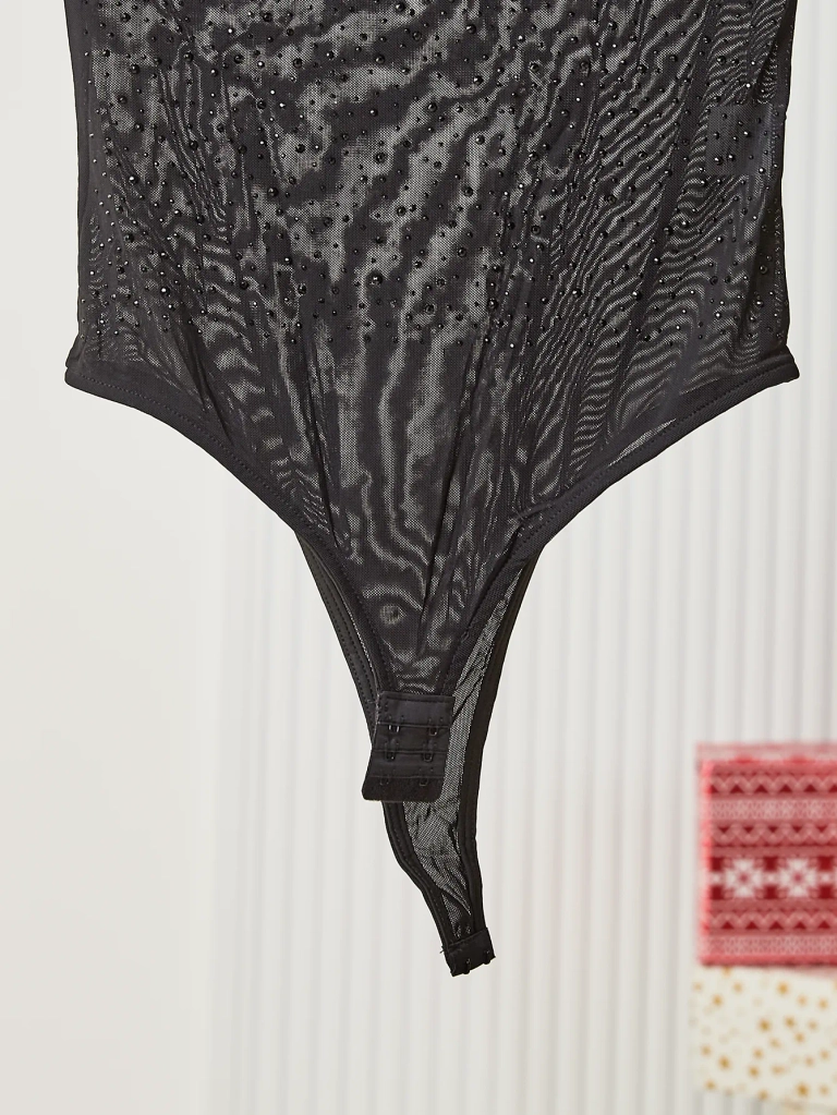 - Body aus Mesh mit Zirkonen, die ihnen Eleganz verleihen. Lange Ärmel verleihen Subtilität. Die Befestigung mit Haken sorgt für eine perfekte Passform. Perfekt für einen Abend voller raffinierter Ausstrahlung. ACHTUNG: Messgenauigkeit (+/-) 1 cm.