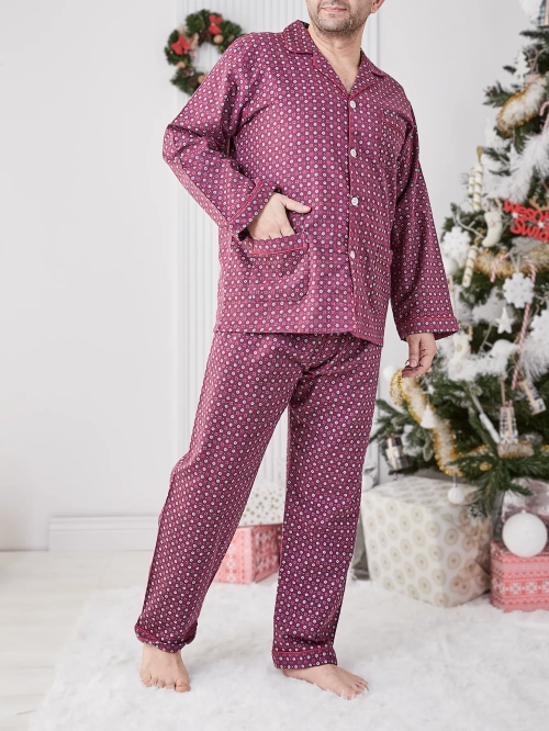 - Herrenschlafanzug mit trendigem Druck, aus Baumwollmaterial gefertigt. Das Model hat lange Ärmel und Hosen. Oben mit Knöpfen verschlossen. Komfort und Eleganz in einem!