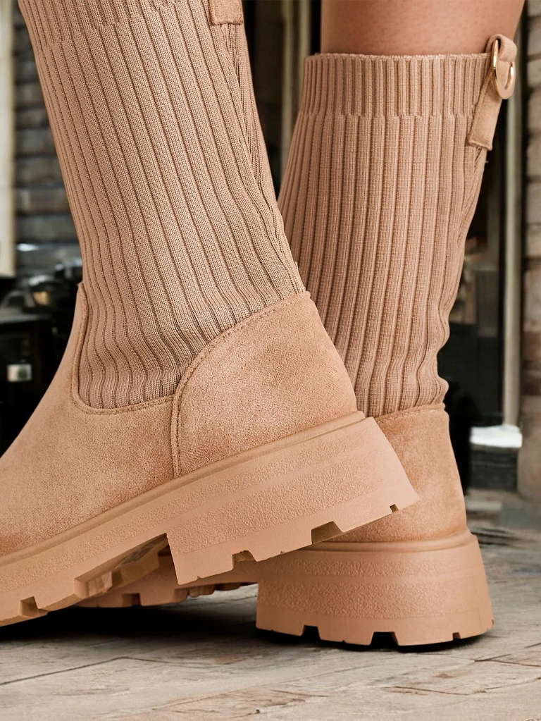 - Fabelhafte Damen Slip-On Stiefel mit flachem Absatz, aus Kunst-Wildleder und Stoff gefertigt. Das Stoff-Innenfutter garantiert auch an kälteren Tagen Komfort und Wärme. Elastische Einsätze an den Seiten sorgen für eine perfekte Passform!
