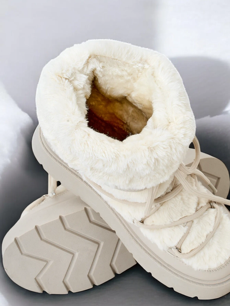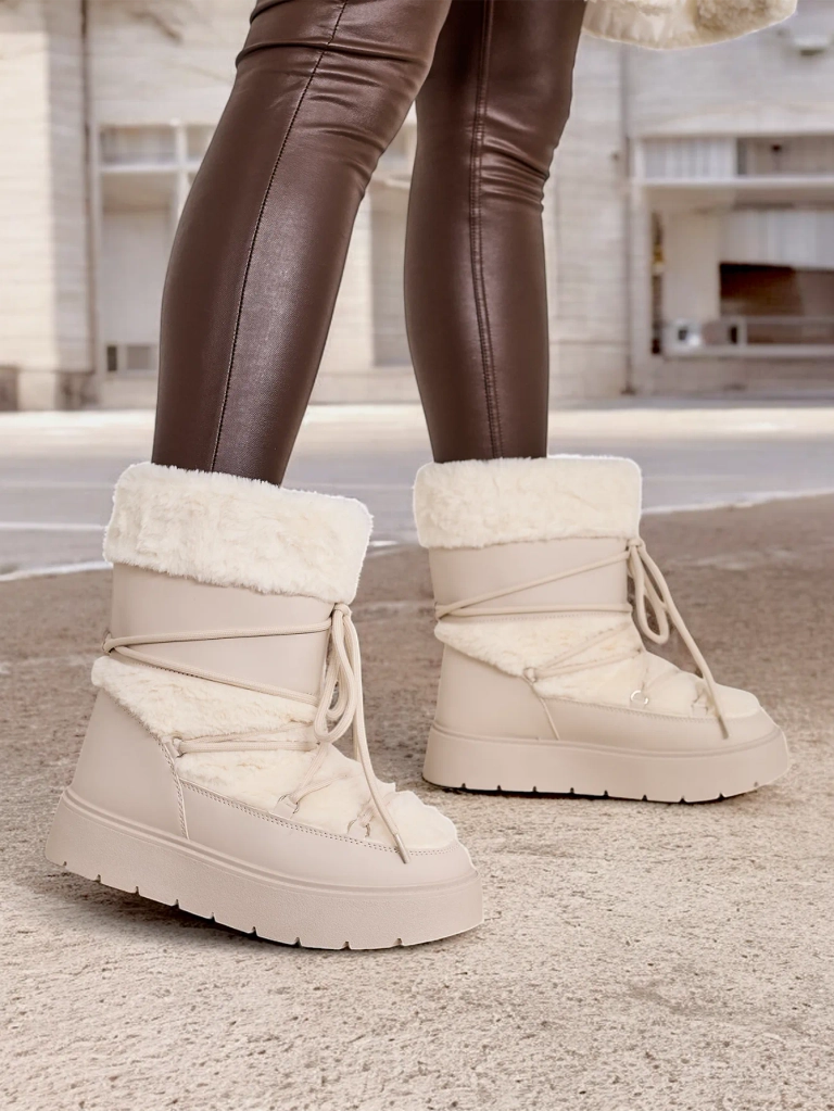 - Damen Schneestiefel mit einem Schaft aus einer Kombination aus Kunstleder und angenehmem Stoff. Innen befindet sich angenehmer Pelz und die Stiefel haben einen geschnürten Schaft. Perfekt für den Winter!