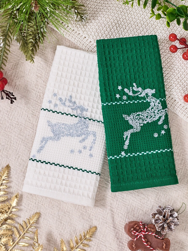 - Set aus Baumwoll-Badetüchern. Das Set enthält: 2 Stück mit den Abmessungen von 40 cm x 60 cm. Die Handtücher werden die Atmosphäre während Weihnachten perfekt einfangen!