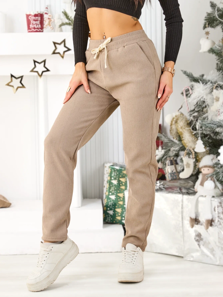 - Isolierte Damen-Sweatpants aus weichem veloursähnlichem Material. Ein einfaches Modell mit zwei Einschubtaschen und einem elastischen Bund mit Kordelzug. Innen mit warmem Polarfleece gefüttert. Perfekte Wahl für den täglichen Gebrauch!