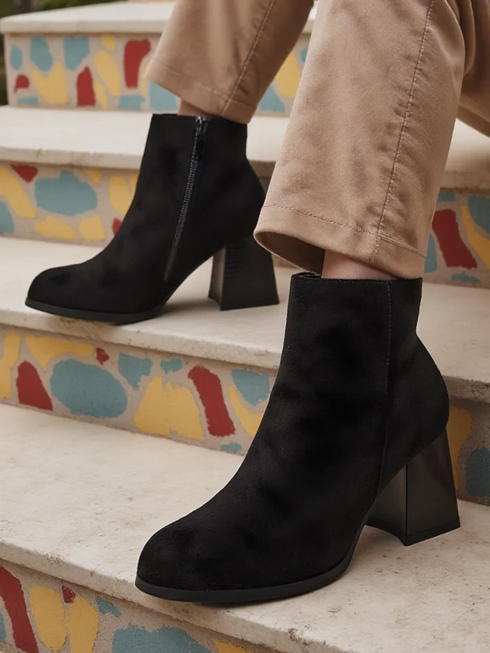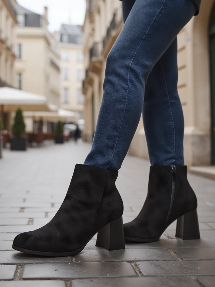 • Faszinierende Damen Stiefeletten mit niedrigem Absatz, aus ökologischem Wildleder. Das Modell verfügt über eine Stoffeinlage und wird mit einem Reißverschluss geschlossen. Perfekt für herbstliche Outfits!