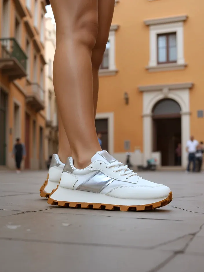 - Damen Sneakers mit flachen Sohlen, aus einer Kombination von glänzendem Eco-Leder, ökologischen Nubuk und Stoffelementen, sind die perfekte Mischung aus Stil und Komfort. Das Modell verfügt über eine textile Einlegesohle. Ideal für aktive Personen!