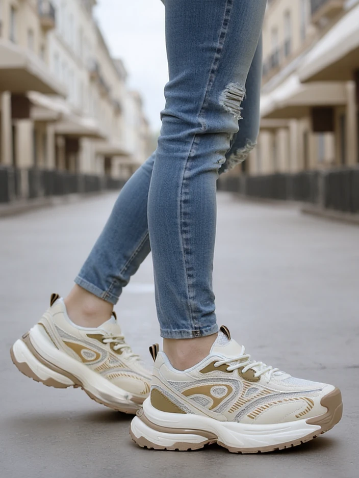 - Damen Sportschuhe in Form von Plattform-Sneakern. Aus Eco-Leder und Stoff gefertigt. Eine großartige Ergänzung für Ihre täglichen Freizeitoutfits!