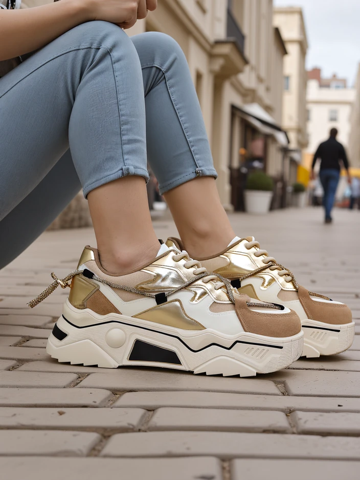 - Damenturnschuhe mit flacher Sohle, eine perfekte Kombination aus Stil und Komfort. Schuhe aus Öko-Leder. Schnürmodell mit dekorativer Schnürung und Strasssteinen. Ideal für aktive Menschen!
