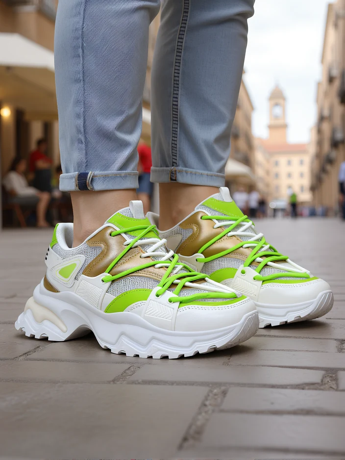 - Damensportschuhe im Sneaker-Stil mit flacher Sohle. Hergestellt aus Eco-Leder mit Stoffeinsätzen. Die Einlegesohle besteht aus angenehm weichem Stoff. Eine großartige Ergänzung zu Ihren alltäglichen Freizeitoutfits!