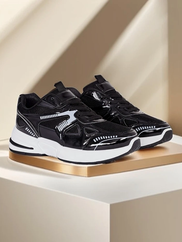 • Damensportschuhe im Sneaker-Stil mit flacher Sohle. Aus lackartigem Kunstleder mit Stoffeinsätzen hergestellt. Innensohle aus Stoff. Eine großartige Ergänzung für Ihre alltäglichen Freizeitoutfits!