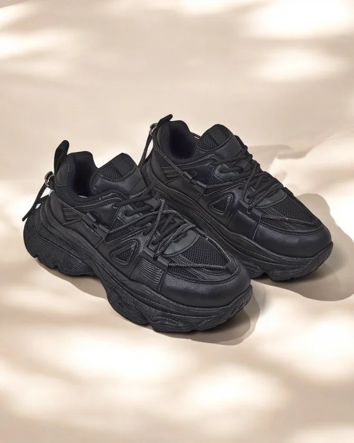 - Damen Sportschuhe im Sneaker-Stil mit dicker Sohle. Hergestellt aus öko-Leder mit Stoffeinsätzen. Die Innensohle besteht aus öko-Leder. Eine großartige Ergänzung zu deinen täglichen Freizeitoutfits!