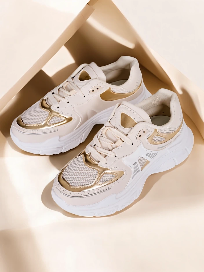 - Damen Sportschuhe im Sneaker-Stil auf einer dickeren Sohle. Hergestellt aus Kunstleder mit Stoffeinlagen. Die Innensohle besteht aus Kunstleder. Eine großartige Ergänzung zu Ihren alltäglichen Casual-Outfits!