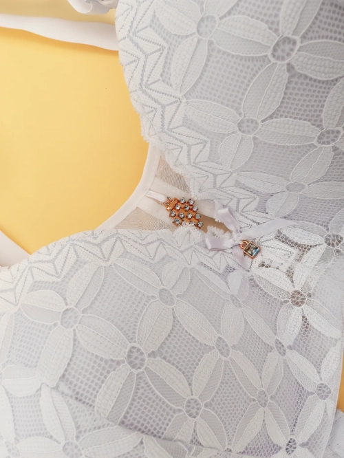 - Eleganter gepolsterter BH für Damen aus angenehm weichem Material. Das Modell verfügt über dekorative Spitze und abnehmbare, verstellbare Träger sowie einen Hakenverschluss auf der Rückseite. HINWEIS: Messgenauigkeit (+/-) 1 cm.