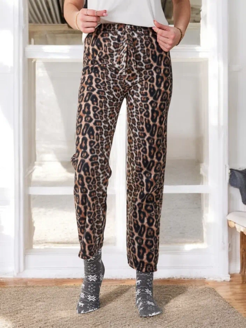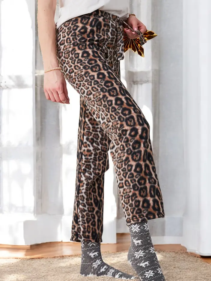 - Frauen Stoffhose aus weichem Baumwollmaterial. Ein Modell mit geradem Schnitt, ausgestattet mit einem elastischen Bund und Kordelzügen. Perfekt für gemütliche Abende zu Hause! HINWEIS: Messgenauigkeit (+/-) 1 cm.