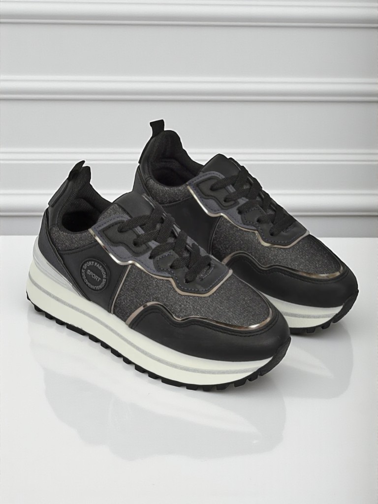 - Damen-Sneakers mit dicker Sohle. Gefertigt aus ökologischem Leder und Glitzermaterial sowie einer Stoffeinlegesohle. Ein tolles Accessoire für Ihre alltäglichen Casual-Outfits!