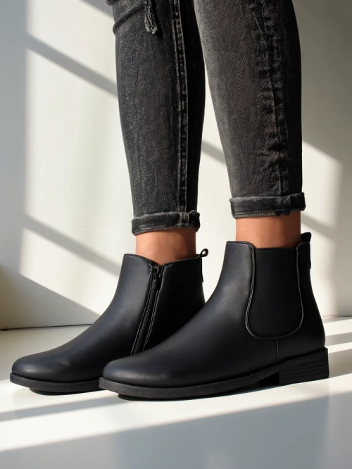 Diese eleganten Chelsea-Stiefeletten zeichnen sich durch ein klassisches Design und Einfachheit aus, was sie zur perfekten Wahl für verschiedene Anlässe macht. Hergestellt aus hochwertigem Kunstleder bieten sie Haltbarkeit und Pflegeleichtigkeit. Die flexiblen Einsätze aus Material sorgen für einen bequemen Sitz, und die robuste Sohle gibt Sicherheit bei jedem Schritt. Diese Stiefeletten sind ideal fürs Büro, für gesellschaftliche Treffen oder Wochenendausflüge. Sie lassen sich dank der Schlaufe auf der Rückseite leicht an- und ausziehen.