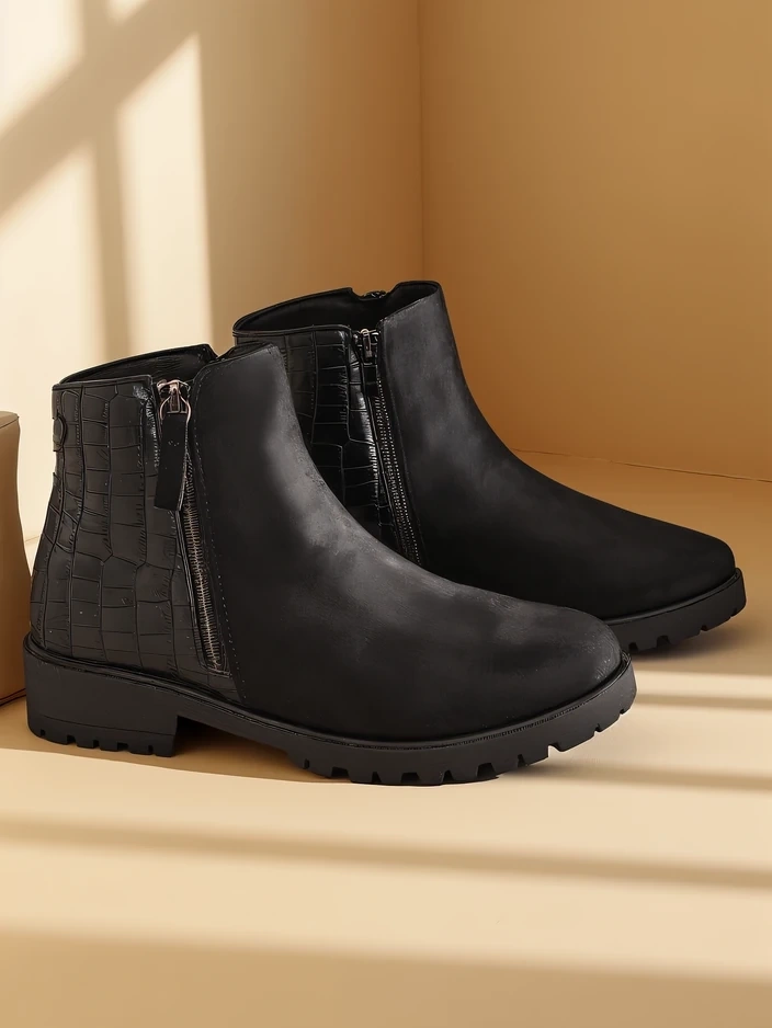 - Wunderschöne Damenstiefeletten mit flachem Absatz, aus Wildleder-Ökoleder. Das Innenfutter mit weichem Fell garantiert Komfort und Wärme, selbst an kühleren Tagen. Das Modell verfügt über einen Reißverschluss.