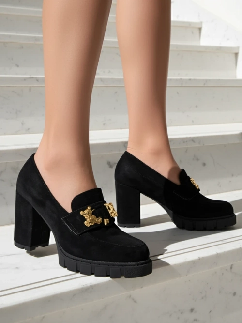 Atemberaubende schwarze Schuhe mit Blockabsatz aus Wildleder, elegant und modisch