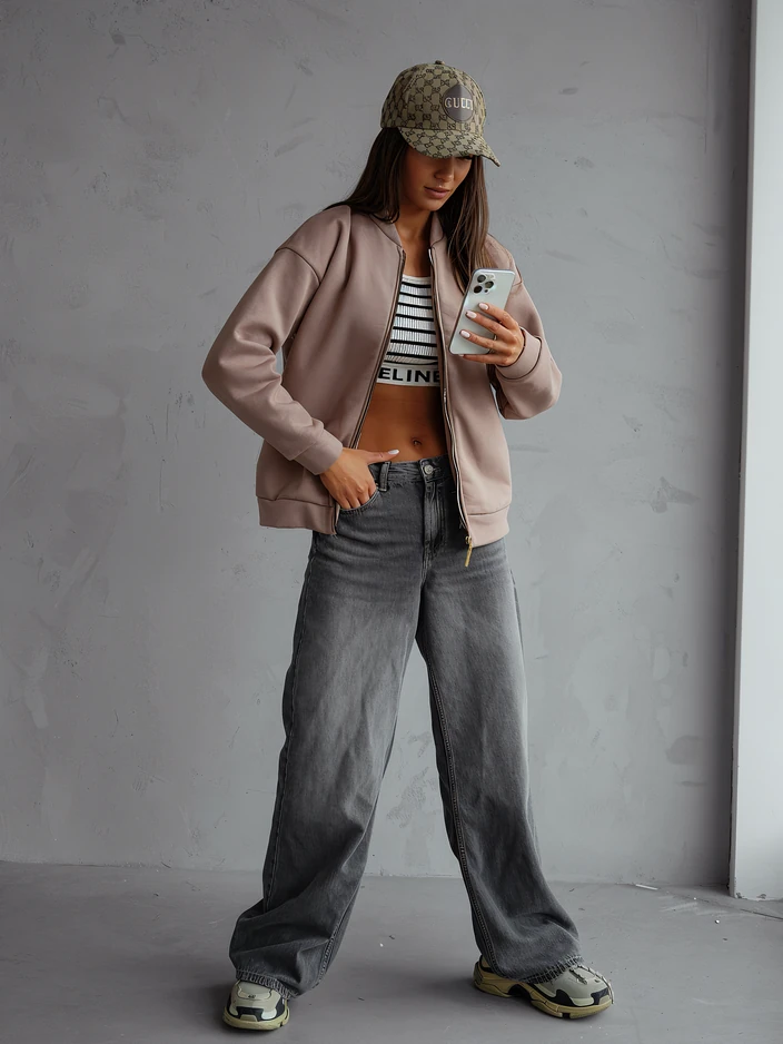 Royalfashion Zip-Jacke Stilvolle Damen-Bomberjacke mit Reißverschluss. Modell ohne Kapuze und ohne Taschen, mit Bündchen am Saum und an den Ärmeln. Perfekt für jede Frau! HINWEIS: Messgenauigkeit (+/-) 1 cm. 87654321