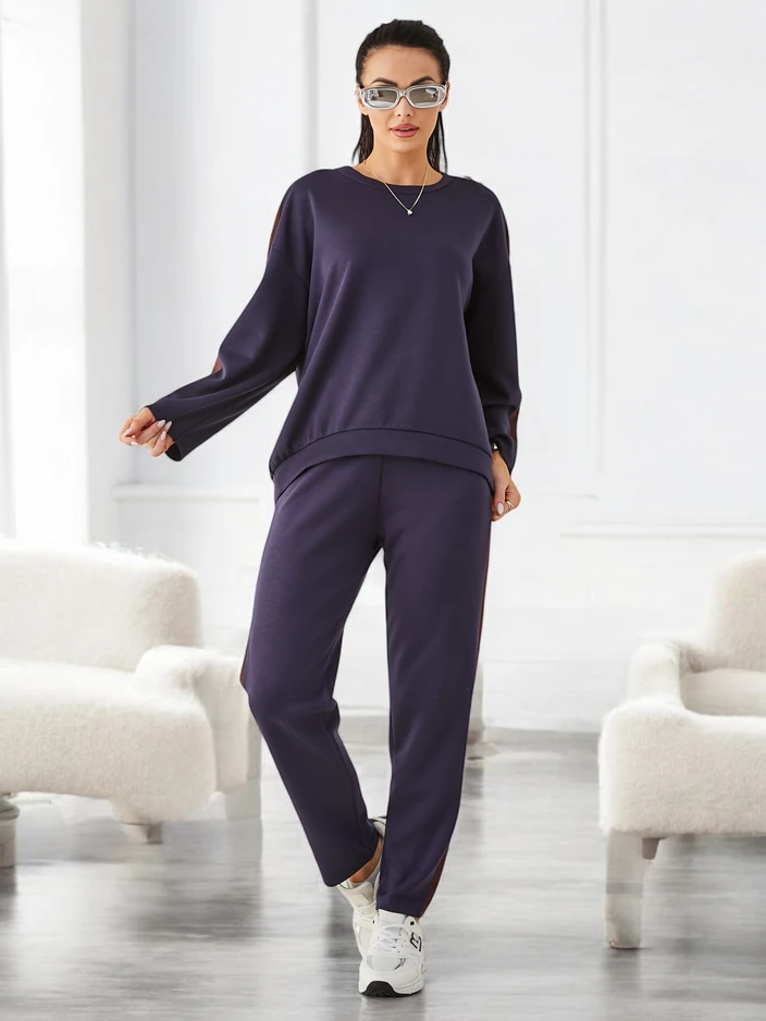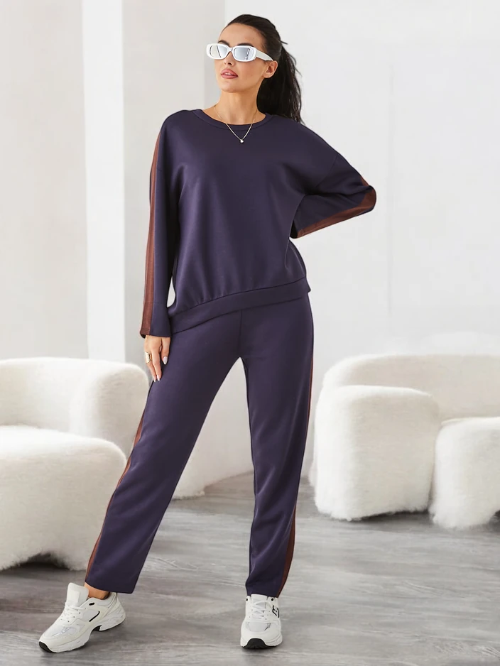 - Damen Trainingsanzug-Set aus angenehmem Stoff. Der Sweatshirt ist im Pull-Over-Stil, hat lange Ärmel und einen runden Ausschnitt. Schlichte Hose mit 2 Seitentaschen und elastischem Bund. Perfekt für diejenigen, die Komfort schätzen.