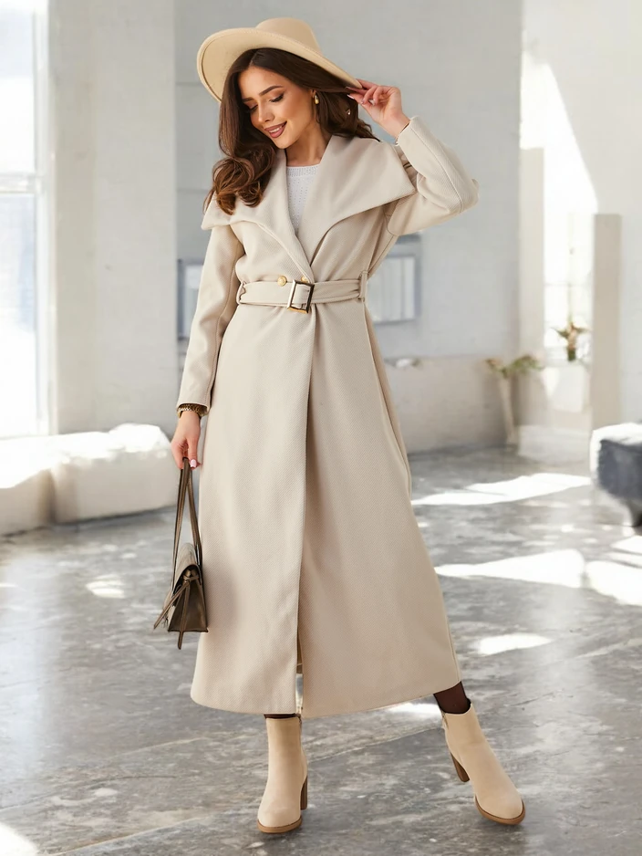 Royalfashion Damen-Maximantel mit Bindegürtel