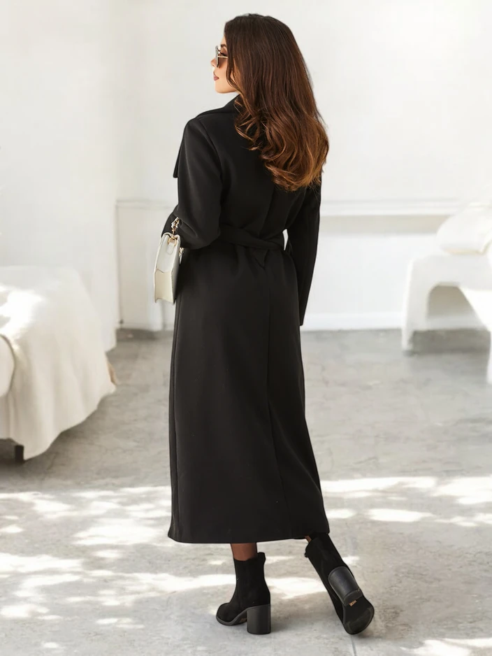 - Zeitloser, knöchellanger Mantel für Damen mit einem gebundenen Gürtel in der Taille. Das Modell verfügt über lange Ärmel und einen Knopfverschluss. Es hat eine Fütterung. Eine ideale Option für den Herbst! HINWEIS: Messgenauigkeit (+/-) 1 cm. Maße flach g
