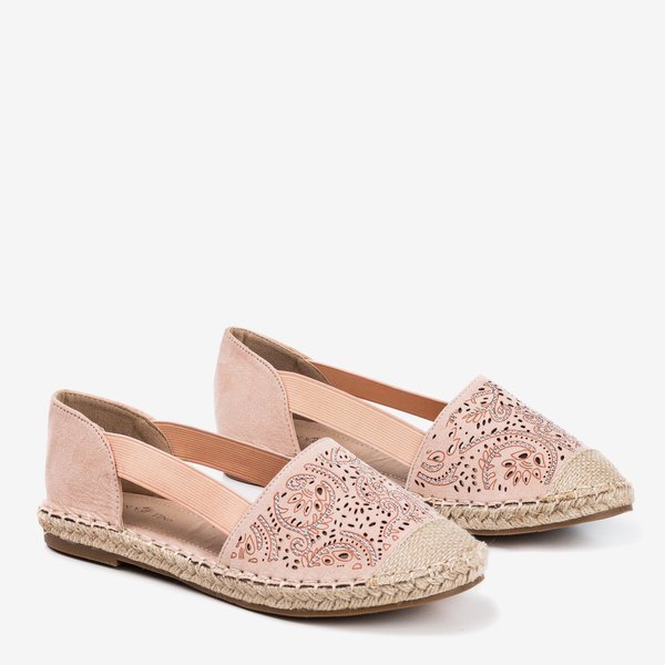 • Bequeme Schuhe mit offenem Zeh aus Öko-Gämsenleder. Ausschnitte und dekorative Strasssteine in der Nase. Schuhe als Espadrilles stilisiert. Perfekt für den täglichen Gebrauch. Die Sohle ist mit einer Jutesaite verziert. Perfekt für wärmere Tage!