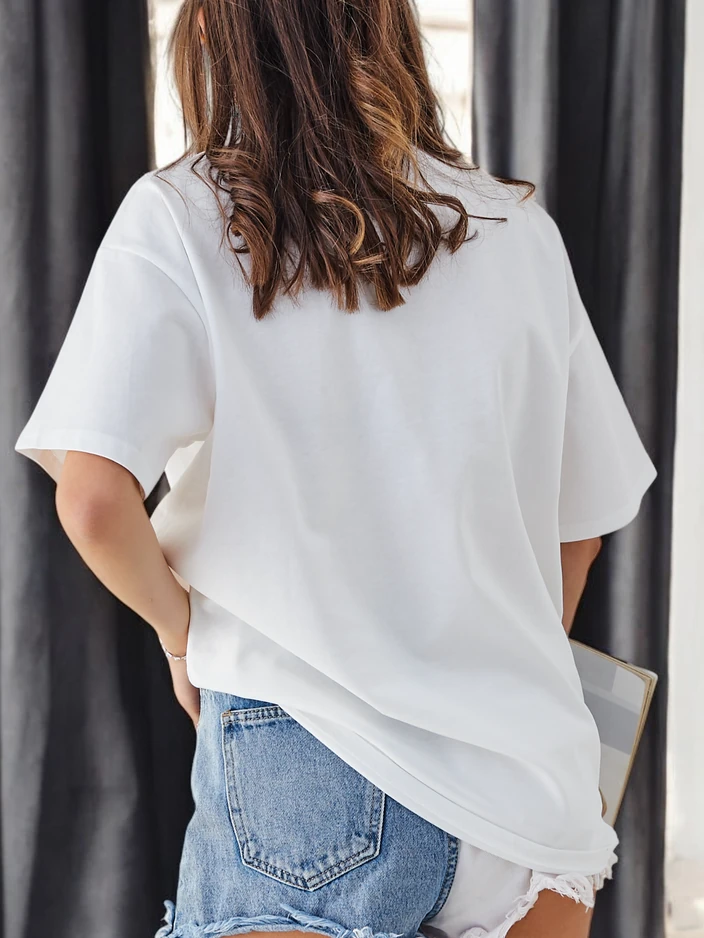 - Das Baumwolle Damen T-Shirt ist eine leichte und bequeme Option für jeden Tag. Inspiriert von Strasssteinen, ist es perfekt für lässige Stile. Der weiche Stoff sorgt für Komfort, und das minimalistische Design macht es für verschiedene Outfits geeignet.